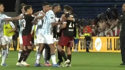 Una vez que Hernán Mastrángelo hizo sonar el pitazo final se generó un careo entre ambos planteles en el centro del terreno de juego, con las emociones aún a flor de piel luego de concretarse el triunfo del Millonario.