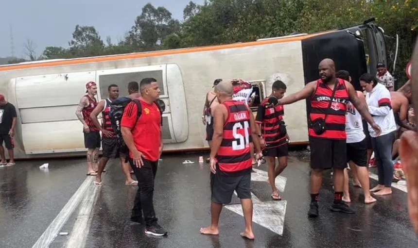 Un micro que trasladaba hinchas del Flamengo hacia la Argentina volcó este lunes en la autopista Presidente Dutra, en las cercanías de Barra Mansa, estado de Río de Janeiro.
