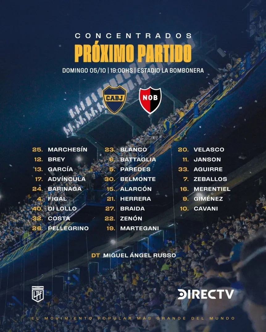 Con todo listo para el compromiso, el ayudante de campo de Miguel Russo, quien ocupa el rol principal mientras aguardan el regreso del experimentado DT que está ausente por cuestiones de salud, Boca irá en busca de volver a los puestos de clasificación a la Copa Libertadores con el siguiente once: Agustín Marchesín; Juan Barinaga, Lautaro Di Lollo, Ayrton Costa, Lautaro Blanco; Brian Aguirre, Rodrigo Battaglia, Leandro Paredes, Alan Velasco; Miguel Merentiel y Milton Giménez.
