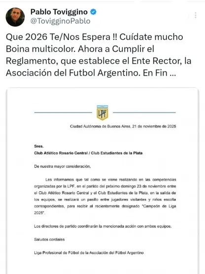 El último cruce mediático fue este viernes. Toviggino redobló la apuesta y dio a conocer que el Pincha debía hacer un "pasillo de honor" al Canalla y apuntó contra Verón.