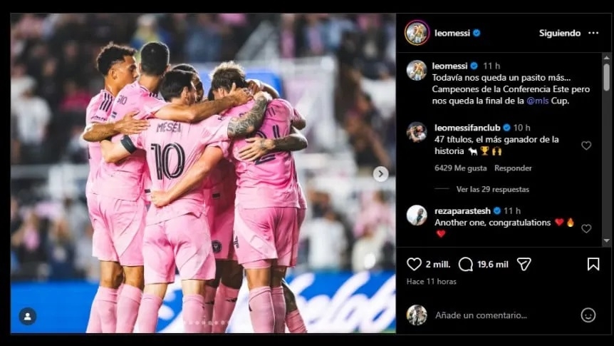 "Todavía nos queda un pasito más. Campeones de la Conferencia Este, pero nos queda la final de la MLS Cup", escribió Leo acompañando a varias fotos del encuentro ante el conjunto neoyorquino.