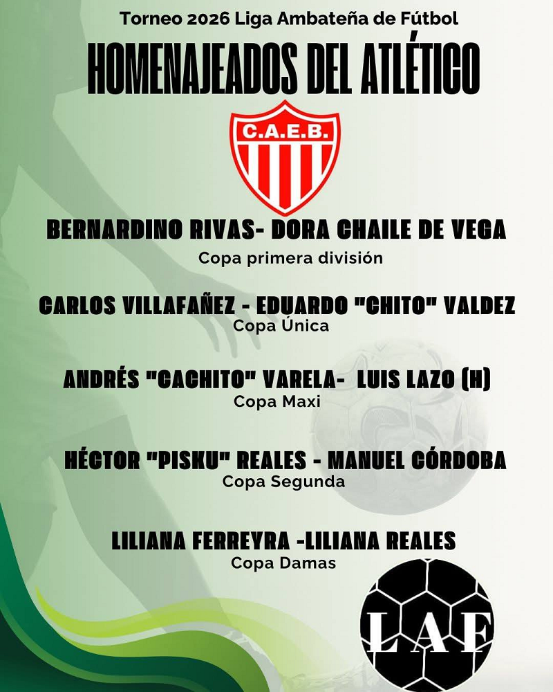 Tres de enero, en el primer sábado del año, inicia la temporada 2026 del torneo de mayores de la Liga Ambateña de Fútbol.
