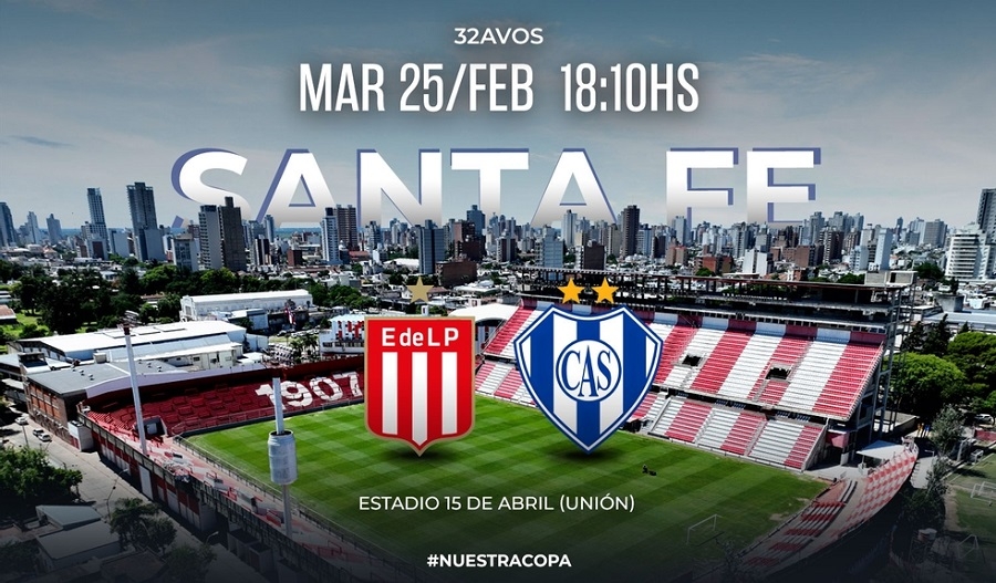 El estadio 15 de Abril (Unión de Santa Fe) albergará el cruce inédito entre Estudiantes de La Plata, ganador del trofeo en la undécima edición de la Copa Argentina, y Sarmiento de La Banda, representante del Torneo Federal que estrenará su nombre en las instancias decisivas. El ganador jugará contra Aldosivi o Gimnasia y Tiro de Salta.