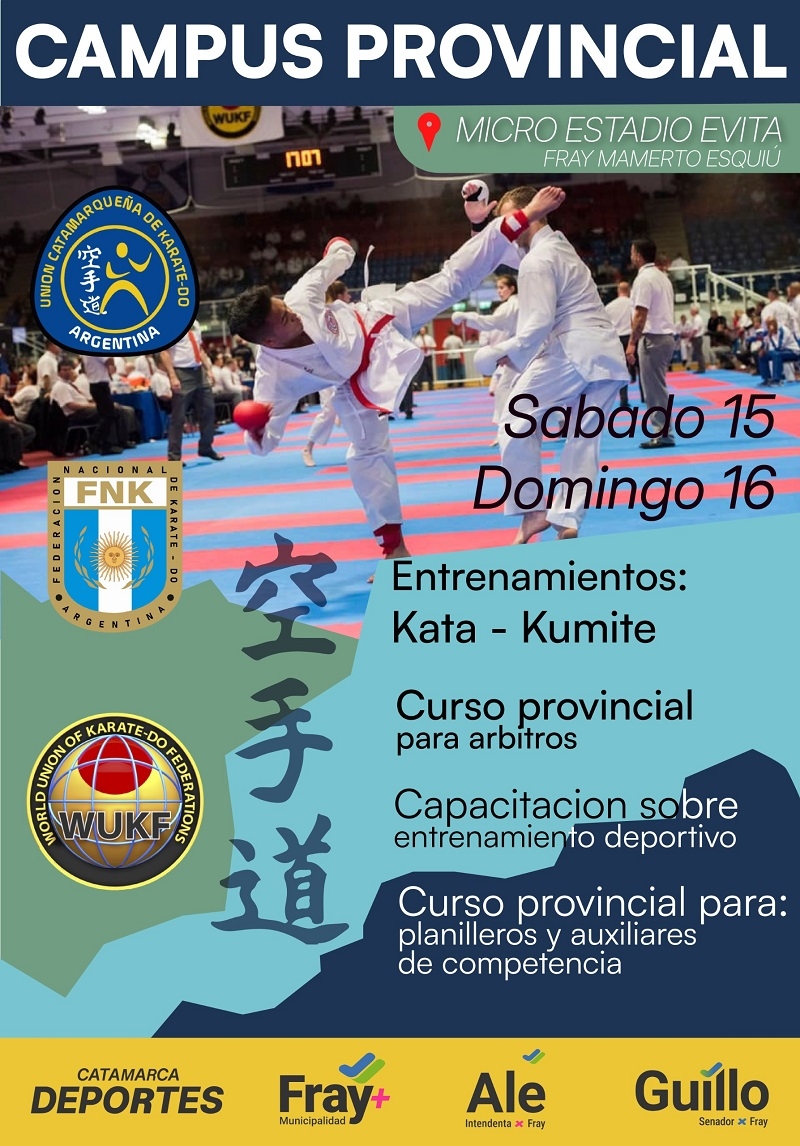 En este Marco el Campus contará de Capacitaciones en arbitraje, planilleros, auxiliares de competencia, desarrollo técnico en Kata y Kumite, como así también el Prof. Patricio Valdez brindará diversas charlas referidas a Entrenamiento Deportivo, Deporte y Salud, dirigida a los Karatekas, Sensei, Padre y Madre de los atletas.