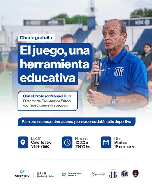 Bajo el lema “El Juego, una Herramienta Educativa”, la disertación estará a cargo de Manuel Ruiz, destacado profesional y responsable de las divisiones inferiores del club Talleres de Córdoba. Durante el encuentro, se abordarán estrategias para potenciar el aprendizaje y la formación integral de jóvenes deportistas a través del juego.
