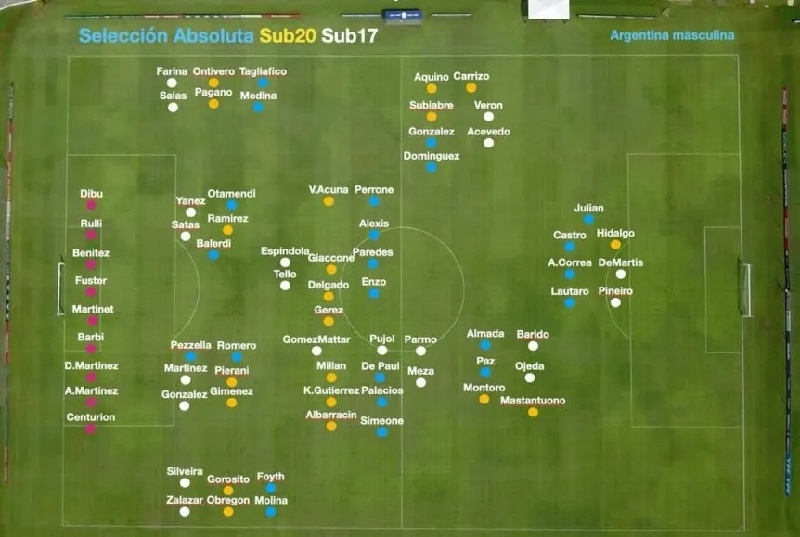 La Selección Argentina ya se prepara para lo que será una doble jornada de Eliminatorias Sudamericanas en la que podría llegar a sellar su clasificación al Mundial 2026. En paralelo, los combinados Sub 20 y Sub 17 se preparan para el Mundial y el Sudamericano, respectivamente, algo que derivó en que el presente y el futuro del combinado nacional "cope" el predio Lionel Andrés Messi. Dicha situación quedó plasmada en una foto que compartí Matías Manna, analista de videos del cuerpo técnico de Lionel Scaloni, que a su vez despierta ilusión no sólo por la actualidad, sino también por lo que viene para la Mayor.