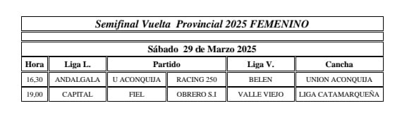 Las semifinales de vuelta, por el Provincial Femenino, irán el sábado 29, con esta rogramación: