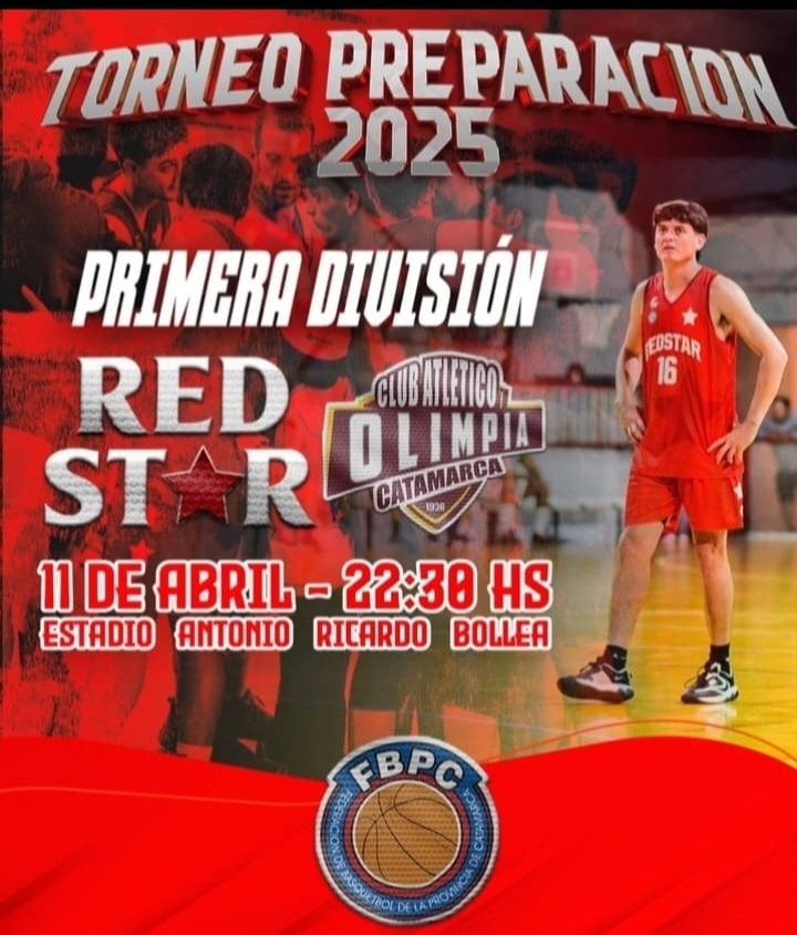 Red Star jugará este Viernes, desde las 22.30, ante Olimpia, de local, por la 4ta Fecha, del Torneo Preparación que organiza la Federación de Básquetbol de la Provincia de Catamarca.