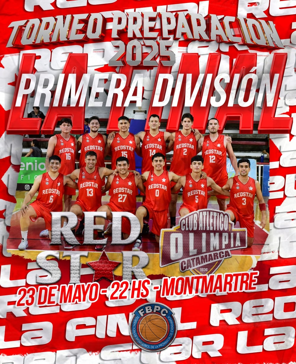 Red Star jugará en este Viernes, desde las 22.00, y ante Olimpia, su 6ta final de las últimas 7 desarrolladas, en el Básquetbol Catamarqueño de Primera División, en un cotejo que cerrará la primera parte del año con sede en Montmartre, en Sigfrido Schunk y Av. Dr. Navarro, de Barrio Achachay.