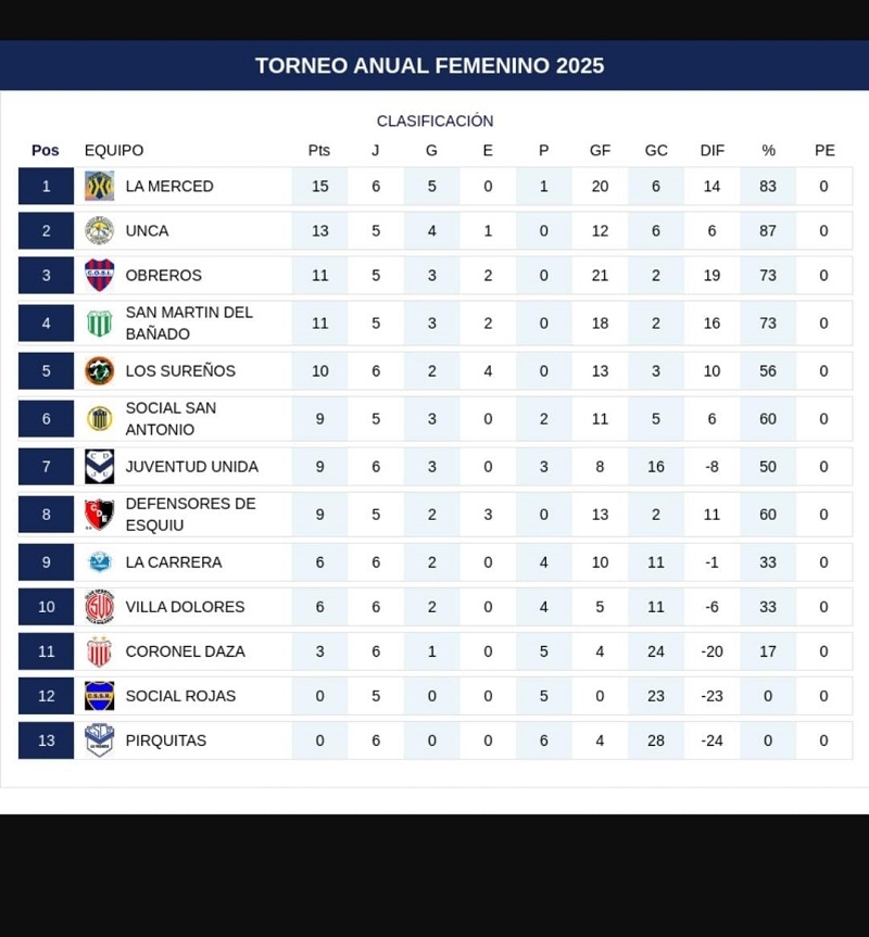 Además, entre semana se completó la 6ta. fecha en el estadio Primo Antonio Prevedello. En uno de los partidos más esperados, San Martín de El Bañado fue una aplanadora y venció a Social Rojas por 8 a 0, mostrando su jerarquía y nivel.