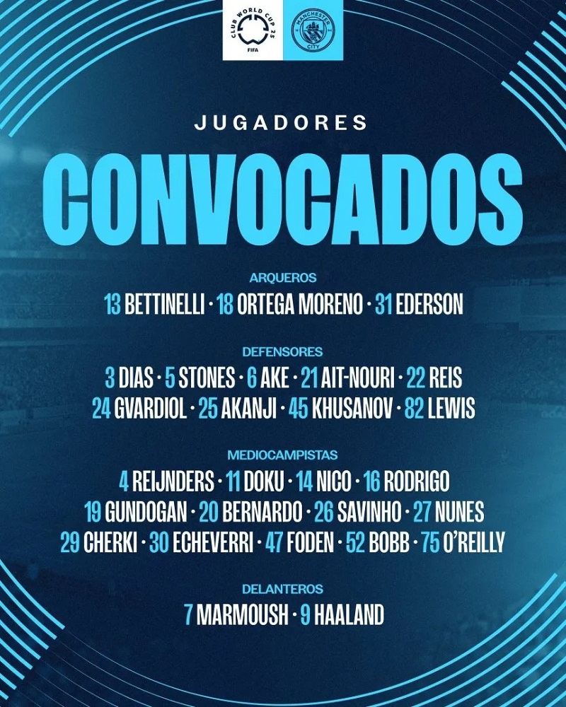 Con el Mundial de Clubes a la vuelta de la esquina, los equipos clasificados hicieron oficiales sus listas de convocados y una de las sorpresas se presentó en Manchester City.