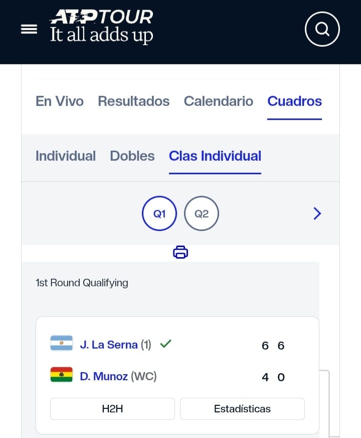 Pero surgió una baja en el Challenger, y La Serna, al ser el de mejor ranking en la última fase de qualy pudo meterse al cuadro principal como Lucky Looser (Perdedor Afortunado).
