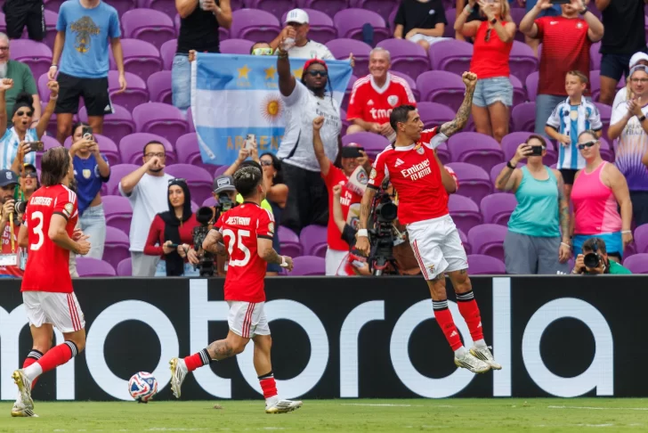 Tras el 1-0 de Di María desde los doce pasos, Vangelis Pavlidis, Renato Sanches, Leandro Barreiro (por duplicado) y nuevamente Di María desde el punto penal sellaron la goleada.