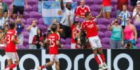 En una noche marcada por la lluvia y los goles, Benfica aplastó 6-0 a Auckland City por la segunda fecha del Grupo C del Mundial de Clubes, en un partido que se jugó en Orlando y que estuvo detenido más de dos horas por una tormenta eléctrica.