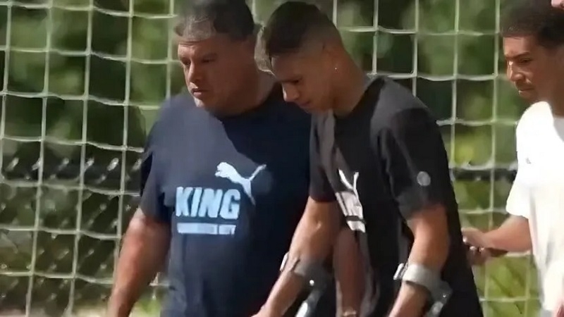 Claudio el Diablito Echeverri apareció en el entrenamiento de Manchester City en Estados Unidos con una bota en su pie derecho y caminando con muletas, imagen que generó mucha preocupación después de su debut como titular y con gol en el equipo inglés ante Al-Ain por la fecha 2 del Mundial de Clubes.