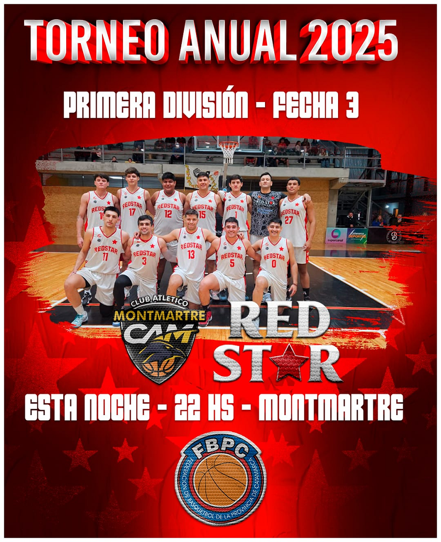 Red Star, luego de dos triunfos (ante Hindú y Ateneo), tendrá su primer partido de visitante, este viernes desde las 22.00, ante Montmartre, por el Anual de Primera División que organiza la Federación de Básquetbol de la Provincia de Catamarca.