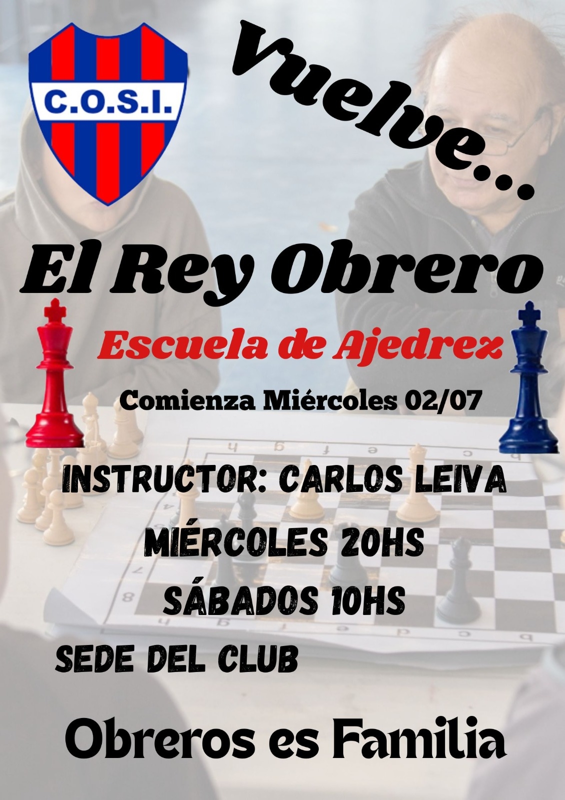 La Comisión Directiva del Club Obreros de San Isidro, en función desde hace 4 meses, incorpora una nueva disciplina deportiva en la Institución: el Ajedrez, de la mano del Instructor Carlos Leiva, quien hace décadas fuera un alumno en una escuela de ese deporte que funcionaba en el club y llegó a competir en torneos, cuyo nombre es hoy recuperado.
