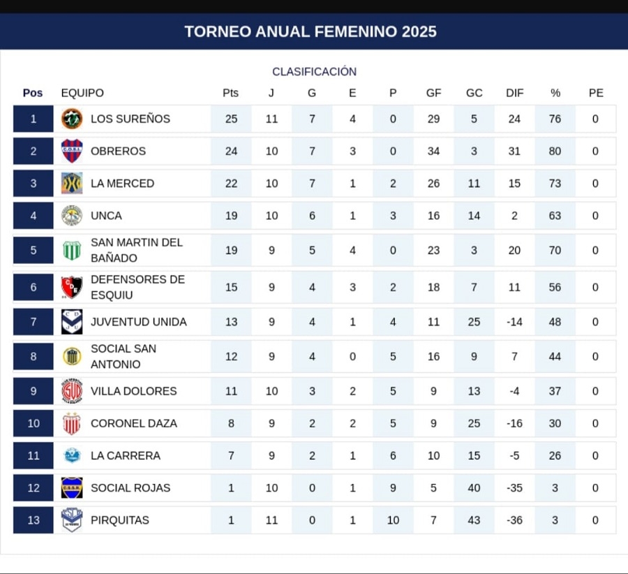 El partido entre San Martín de El Bañado y La Carrera se jugó este miércoles 9 de Julio, con triunfo de las "Santas" por 3 a 0.