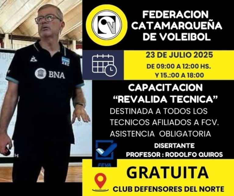 La jornada se desarrollará en doble turno: por la mañana, de 9:00 a 12:00 horas, y por la tarde, de 15:00 a 18:00 horas. Esta capacitación es fundamental para la actualización y renovación de conocimientos técnicos dentro del ámbito del vóley regional.