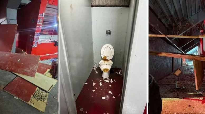 Con la desconcentración del público y el paso de las horas, los pasillos de la cancha del Rojo se convirtieron casi en un escenario de posguerra. Desde estragos en los baños hasta portones derribados, pasando por fierros arrancados y rejas forzadas.