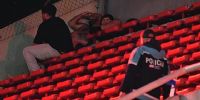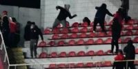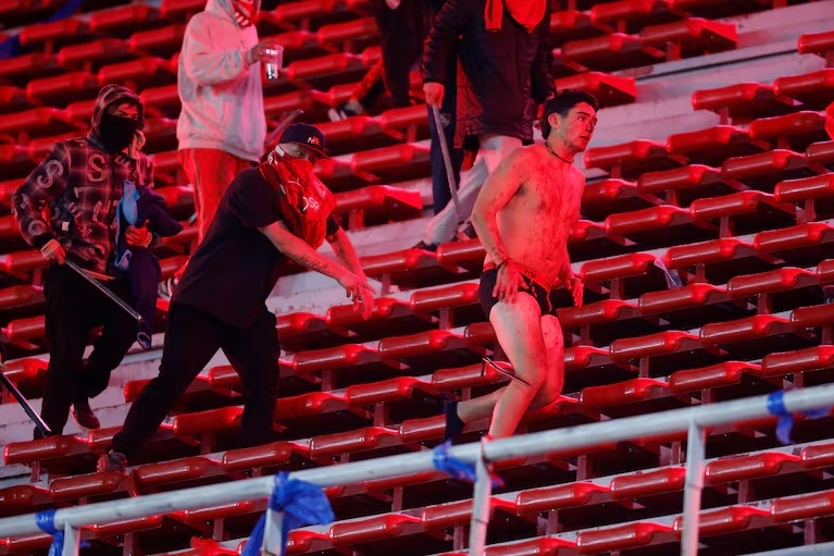 En varios sectores quedaron vestimentas de los hinchas visitantes -luego de la agresión de la barra local- y manchones de sangre.