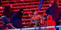 Muchísimas butacas extraídas de sus lugares y piedras de diferentes tamaños por doquier.
