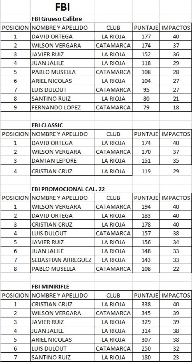 El gran protagonista de la jornada fue Wilson Vergara, quien consiguió múltiples podios, incluyendo el primer puesto en la categoría FBI Promocional Cal. 22, confirmándose como uno de los tiradores más destacados de la región.