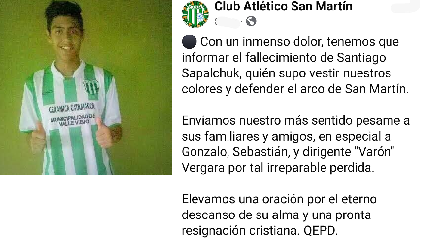 En las últimas horas se conoció la triste noticia del fallecimiento de Santiago David Sapalchuk, ex jugador de San Martín de El Bañado.