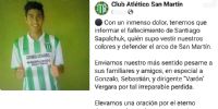 El Club San Martín y la Liga Chacarera de Fútbol expresaron su pesar en redes sociales con sentidos mensajes de despedida.