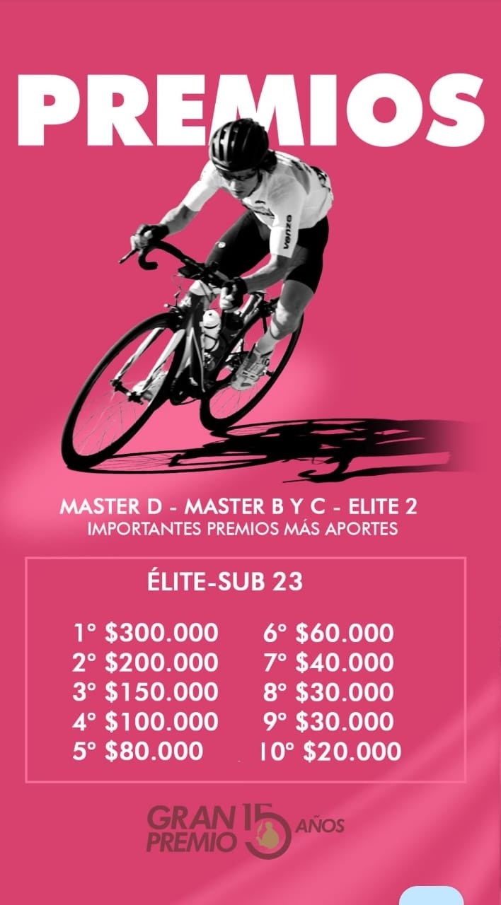 Podrán participar de la misma ciclistas de las categorías Elite Sub 23, Elite 2, Master D, Master C y Master B y habrá una importante premiación en efectivo.