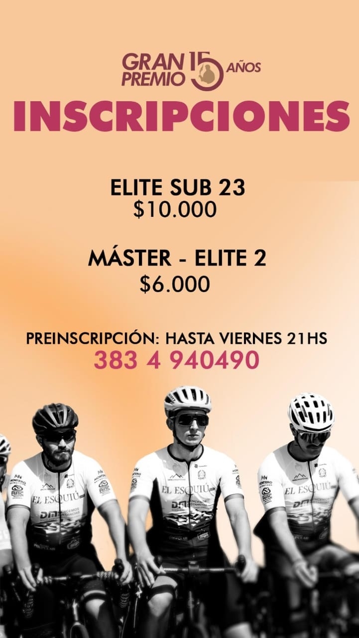 Las inscripciones tienen un costo de $10.000 (Elite Sub 23) y $6.000 (Master y Elite 2).