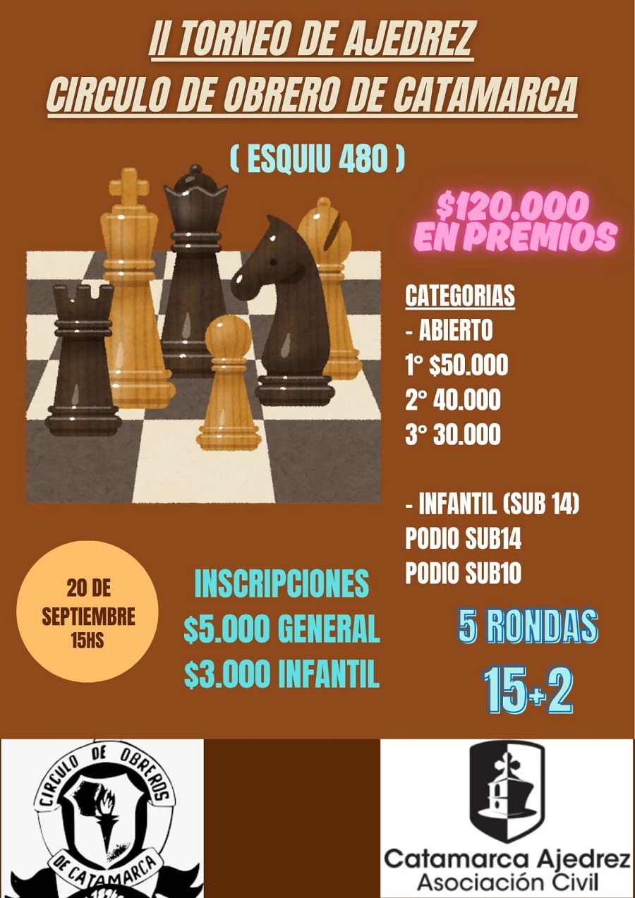 Organizan: Círculo de Obreros de Catamarca y Asociación Catamarca Ajedrez.