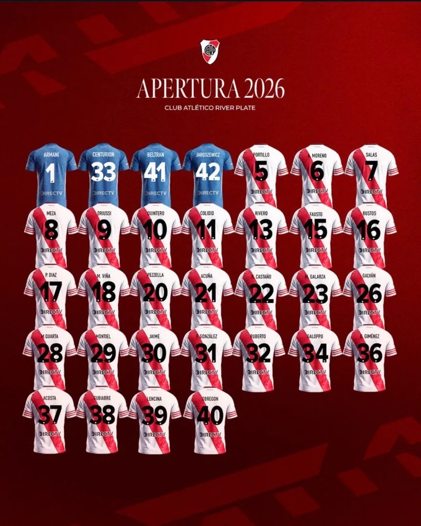 A dos días del debut del Torneo Apertura frente a Barracas Central en condición de visitante, River hizo oficial la presentación de los nuevos dorsales que portarán en sus camisetas los futbolistas del plantel durante el campeonato local en 2026. Conocé las principales novedades.