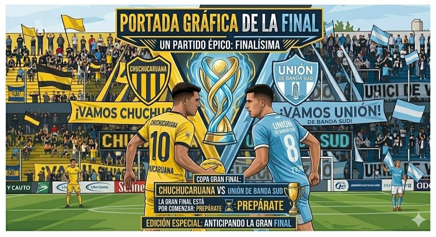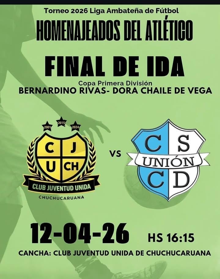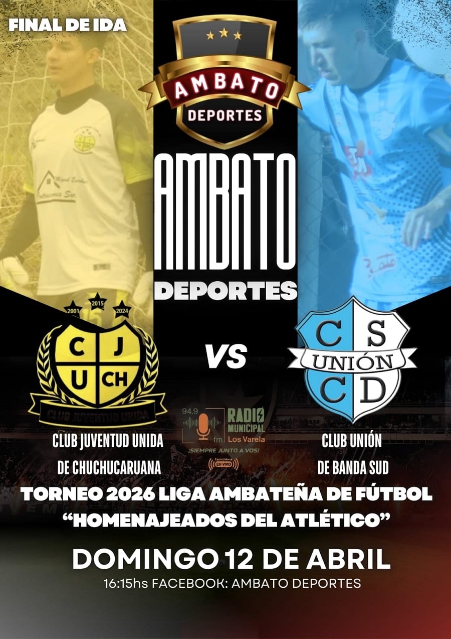 La final de ida de 1ra División se jugará este domingo a partir de las 16:15hs en el estadio "Ricardo Nicolás Bazán" de Chuchucaruana, y contará con transmisión en vivo a través de Ambato Deportes y Radio Municipal Los Varela 94.9.