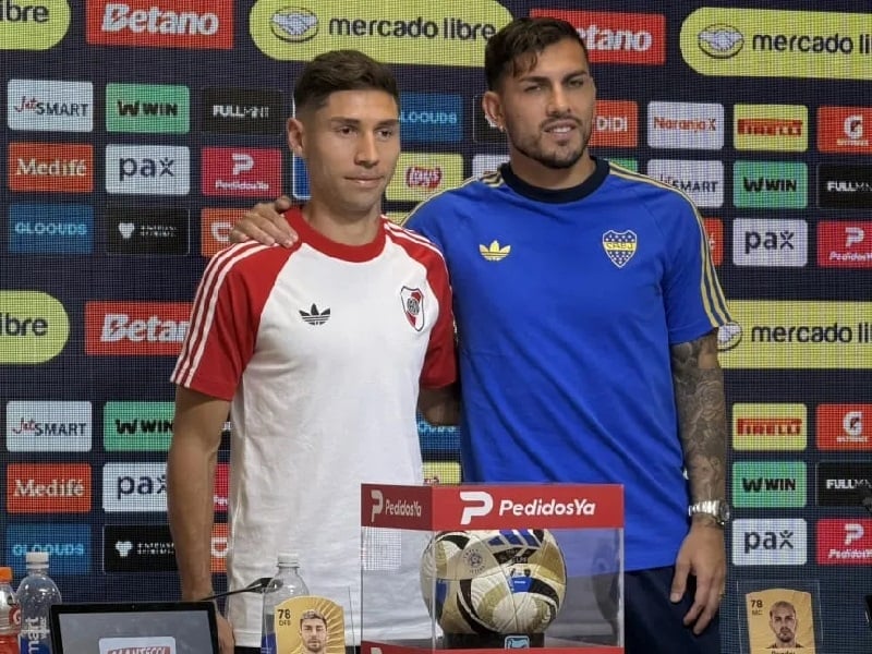 En medio de una previa en un clima enrarecido por las críticas a Darío Herrera por parte de la gente de Boca y por las imágenes que evidenciaron el mal estado del campo de juego de River, Gonzalo Montiel y Leandro Paredes compartieron una conferencia de prensa para palpitar el Superclásico.