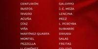 Santiago Beltrán; Gonzalo Montiel, Lucas Martínez Quarta, Lautaro Rivero, Marcos Acuña; Aníbal Moreno, Juan Cruz Meza, Tomás Galván; Ian Subiabre o Kendry Páez, Facundo Colidio y Sebastián Driussi. DT: Eduardo Coudet.