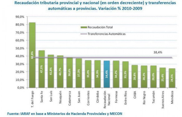 “La recuperación de la actividad económica, junto con el crecimiento en el nivel general de precios y la suba de alícuotas y montos fijos llevada a cabo por gran parte de las administraciones provinciales durante 2010 permitieron incrementar los niveles recaudados”, explican desde el Iaraf.