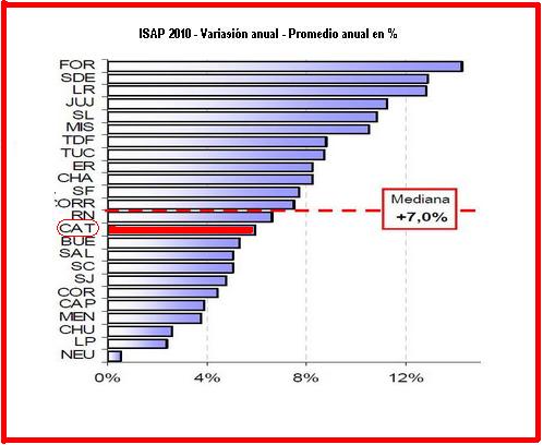 Pasaron las elecciones, por lo que tal vez al oficialismo ya no le importe que se conozcan datos que reflejan de ultima la calidad de su gestión de Gobierno. Según la consultora Muñoz y Asociados, a la cabeza del ranking del Indice Sintético de Actividad Económica, aparece Formosa (+17,0% frente a 2009), seguida por Santiago del Estero con un índice de crecimiento que supera el 13%.