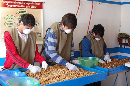 La \"Cooperativa Mutquín Limitada\" está integrada por 10 socios cooperativistas que se encargan desde el riego, el garroteo, la cosecha y la partida de la nuez, tareas que demandan el trabajo de alrededor de 20 familias más.