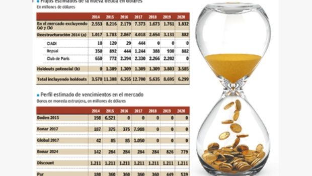 Para Miguel Kiguel, socio Econviews, el grueso de los vencimientos importantes en el corto plazo se darán el próximo año, cuando el Gobierno deba hacer frente al pago del cupón del Boden 15, en la primera quincena de octubre de 2015. “"Tenemos más de un año para llegar a un acuerdo con los holdouts. En caso que esto ocurra, los flujos financieros deberían llegar rápido”", agregó Kiguel. Cronista Comercial.
