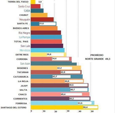 superado por Santiago del Estero (56,7%), Formosa (53,5) y Corrientes (50,2).
