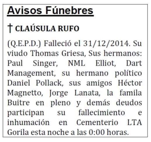 La cláusula RUFO era una de las disposiciones fijadas en los prospectos de canje de deuda instrumentado en 2005, que obligaba al país, por espacio de 10 años, a incluir a los tenedores de títulos reestructurados en cualquier nueva oferta que representara una mejora respecto a las condiciones establecidas originalmente.