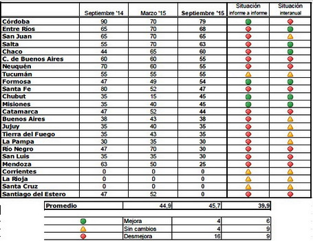 contra el informe pasado, el promedio de las provincias desmejora de