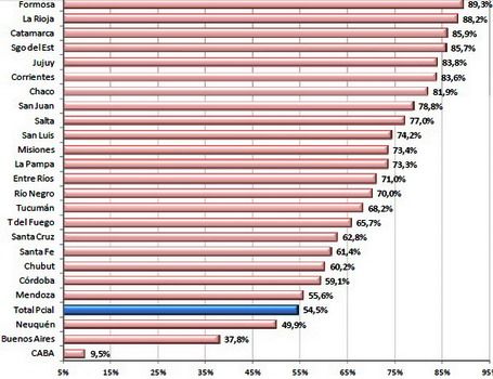 Por su parte, Buenos Aires presenta un indicador de 37,8% y