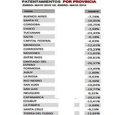 del 12,7 por ciento. Entre enero y mayo de 2015 se vendieron en la Argentina