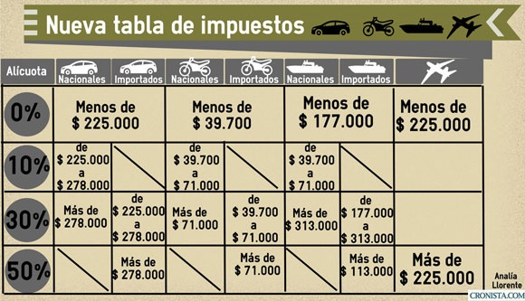 En el caso de los vehículos de producción nacional, sin embargo, estarán gravadas con una tasa de 10% las operaciones de entre $ 225.000 y $ 278.000; y de 30% para aquellas que superen los $ 278.000.