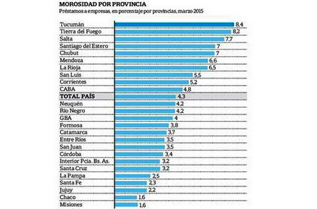 complicadas son Tucumán, con una mora del 8,4%, seguida por Tierra del Fuego