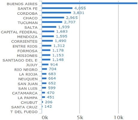 siguió Santa Fe con 3.976 unidades, Córdoba con 3.775 y Chaco con 2.893