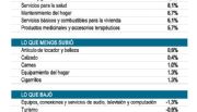 Por el contrario, los ítems que bajaron fueron: equipos, conexiones y servicios de audio, televisión y computación (-1,3%), turismo (-0,9), frutas ( -0,5%), adquisición de vehículos ( -0,3%), ropa exterior ( -0,1%).