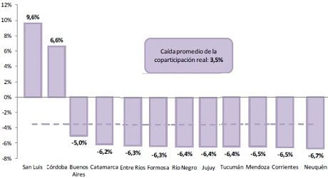provincias, la contracción real de la coparticipación se ubica entre el 5,0% y
